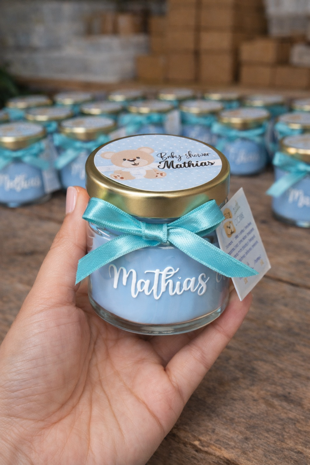 Recordatorio vela vasito con cinta y nombre